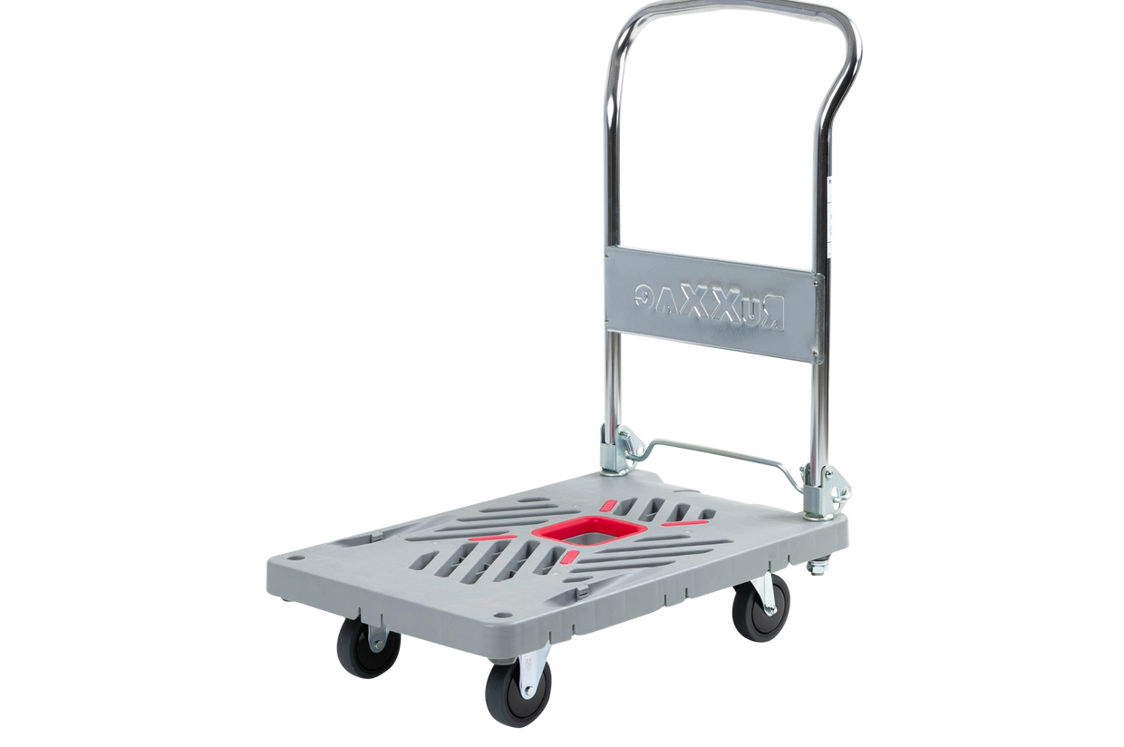 Folding platform trucks create a strong background noise when the handle hits the platform. This noise is reduced by fixing the handle on the platform via special recesses. This results in nothing rattling when transporting the car, making it also easier to carry.